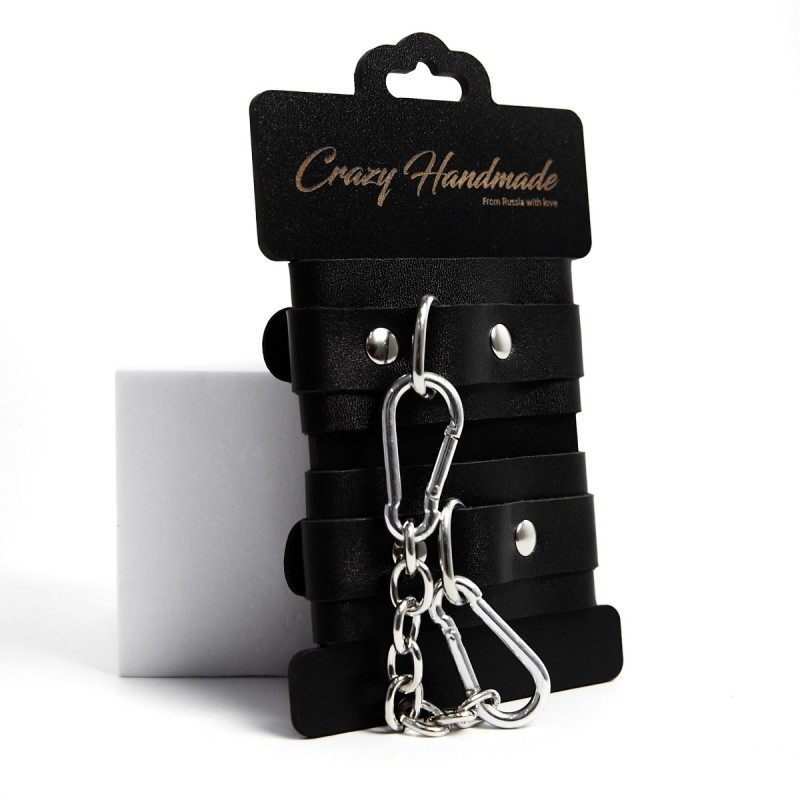 В комплект также входит соединительный кожаный элемент с двумя карабинами, с помощью которого можно зафиксировать между собой ноги.