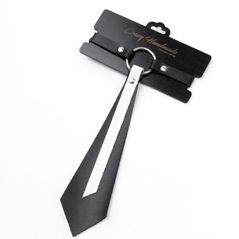 Однослойный чокер из натуральной кожи классической прямоугольной формы с дизайном в стиле галстука и белой декоративной вставкой из кожи.